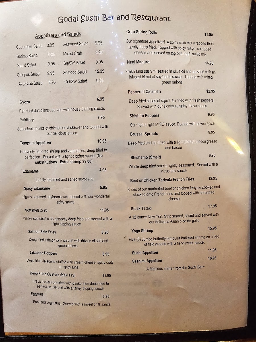 Godai Sushi Bar & Japanese Restaurant Menu (Updated December 2025)